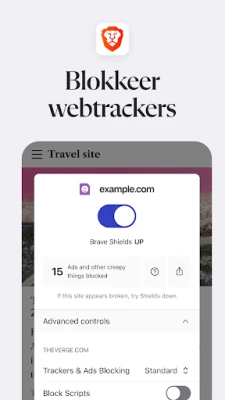De kern van De Brave Web Browser ligt in zijn robuuste beschermingssuite. Een geavanceerde, geïntegreerde advertentieblokker en pop-upverwijderaar houdt ongewenste reclame en hinderlijke vensters effectief tegen. Dit resulteert niet alleen in een veel plezierigere surfervaring, maar beschermt u ook actief tegen tracking door derden, waardoor uw persoonlijke gegevens afgeschermd blijven van nieuwsgierige blikken. Deze efficiëntie draagt bij aan een significant lager dataverbruik en een langere accuduur van uw apparaat, terwijl u geniet van een soepele navigatie zonder advertenties die uw privacy schenden.