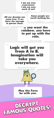 Verken een intrigerende wereld waar woorden meer zijn dan letters alleen. CRYPTOGRAM - CIPHER WORD GAME nodigt u uit om de rol van een meesterdecoder op zich te nemen, gesluierde boodschappen te ontrafelen en verborgen waarheden te ontsluiten. Duik in een universum vol beroemde citaten, spreekwoorden en geheime wijsheden, waarbij elke correcte ontcijfering u dichter bij het hart van raadsels brengt die de mensheid al eeuwenlang boeien. Dit is geen alledaagse woordpuzzel; het is uw toegangspoort tot een avontuur waar logica, doorzettingsvermogen en een scherp oog voor detail de sleutels zijn tot succes.