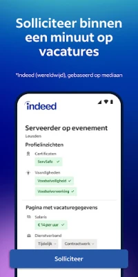 De app is ontworpen om elke stap van het sollicitatieproces te stroomlijnen. Ontdek niet alleen functies van talloze bronnen, maar ontvang ook gepersonaliseerde aanbevelingen die naadloos aansluiten bij uw vaardigheden en ervaring. Maak een professioneel profiel met de ingebouwde cv-maker van Indeed, of upload uw bestaande cv, en solliciteer met één druk op de knop dankzij opgeslagen gegevens. Blijf voortdurend op de hoogte van uw sollicitatiestatus en ontvang direct meldingen wanneer werkgevers uw interesse op Indeed bekijken of hierop reageren.
