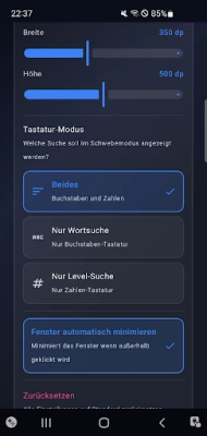 Ontworpen met jou in gedachten, biedt deze tool een schat aan functionaliteiten. De 'Zwevende Modus' past zich dynamisch aan, minimaliseert zichzelf automatisch wanneer je bezig bent met je spel en verschijnt weer wanneer nodig. De 'AI Studio' is jouw persoonlijke creatieve hub voor het maken van originele beelden met behulp van AI. Geniet van een 'Modern Design' dat niet alleen fris en duidelijk is, maar ook uiterst intuïtief in gebruik. Met een voortdurend bijgewerkte database aan 'Oplossingen' ben je altijd voorzien van de nieuwste inzichten, terwijl de 'Prestaties' zijn geoptimaliseerd voor snelheid, lichtgewicht functionaliteit en een minimale belasting van de batterij. Zo blijft jouw apparaat efficiënt en klaar voor de volgende uitdaging.