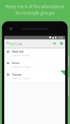 Beheer de aanwezigheid van uw groepen personen moeiteloos met Presli.io. Zeg vaarwel tegen papieren lijsten en complexe spreadsheets. Presli.io biedt een eenvoudige en efficiënte oplossing voor uw aanwezigheidsregistratie.