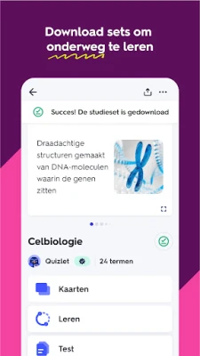 Duik dieper in je stof met de diverse leermethoden die Quizlet tot je beschikking stelt. Gebruik de adaptieve oefenmodus om je geheugen te trainen met gerichte herhaling, of zet je kennis om in competitieve klasgames die leren leuk maken. Bereid je optimaal voor op toetsen en examens met op maat gemaakte oefentoetsen, en perfectioneer je begrip door uitdagende vragen uit eerdere tentamens aan te pakken. Quizlet staat garant voor een effectieve herhaling dankzij slimme beoordelingssystemen die jouw vooruitgang volgen en je focus op zwakke punten richten.