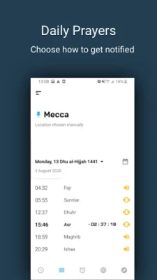De kern van Salatuk wordt gevormd door een geavanceerd algoritme dat een breed scala aan gebedsberekeningsmethoden ondersteunt, zoals die wereldwijd in vele islamitische landen worden gebruikt. Afhankelijk van uw geografische positie selecteert Salatuk intelligent de meest geschikte rekenmethode, de relevante fiqhi-school en de juiste Adhan voor uw locatie. Voor diegenen die specifieke voorkeuren hebben, biedt Salatuk ook de flexibiliteit om handmatig de gebedsmethode aan te passen via de 'Instellingen' of zelfs individuele gebedstijden fijn af te stemmen, zodat het perfect aansluit bij uw persoonlijke behoeften.