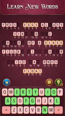 Word Code - Cryptogram Puzzle is een boeiend woordpuzzelspel om je brein te scherpen. Ontcijfer verborgen berichten, kraak codes en los intrigerende letterpuzzels op. Dit ultieme logische cryptogramspel daagt je uit en ontspant je geest, ideaal voor liefhebbers van hersenkrakers.